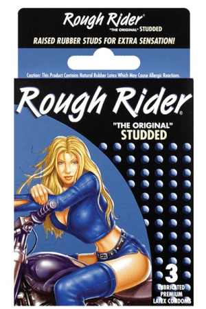 When you want extra stimulation, try the studded Rough Rider. It is seductively studded up, down and all the way around to provide extra sensation and excitement. Rough Rider Studded Condoms is a natural colored condom with a reservoir for added comfort and safety. They are made from premium quality latex and are individually electronically tested for reliability. Let stimulating studs maximize your pleasure!